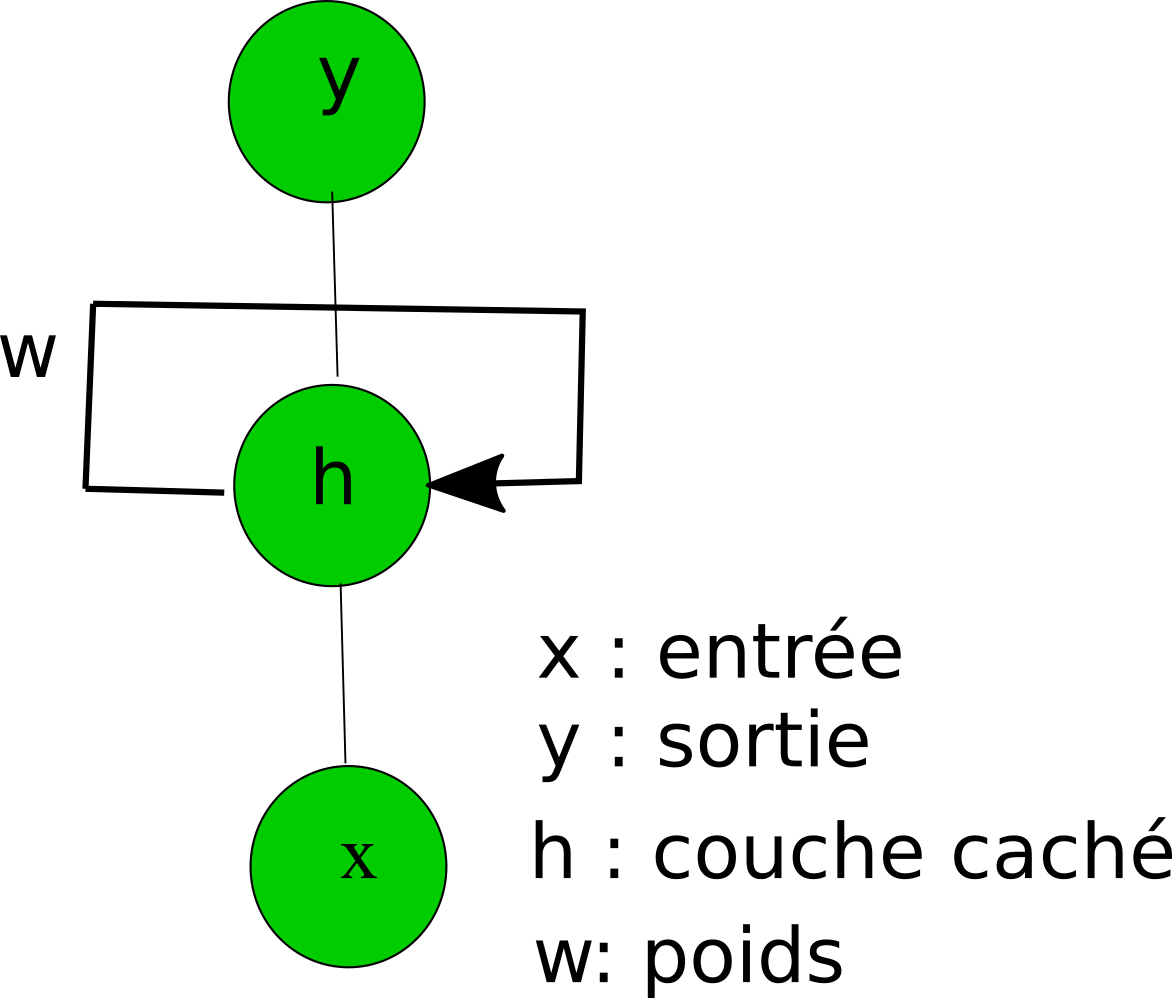 Si on se met à corriger le poids récurrent tels quel, il serait impossible d'entraîner le réseau car cela entraînerait une infinité de gradient. C'est pour cela que lors de son entraînement, le réseau de neurones récurrents sera déroulé selon son évolution au cours du temps pour les séquences reçus en entrée. Le schéma ci-dessous illustre cette propriété.