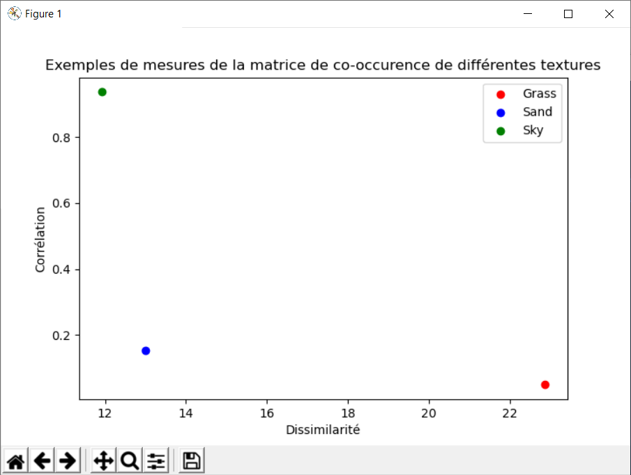 Basiquement, l’entropie est une mesure du désordre qu’il existe dans une série de donnée. Plus la texture est dispersé, moins il y a la même occurrence de pixel dans une même image plus cette valeur sera forte. À l’inverse plus la texture sera granulaire, composé d’occurence de couple de pixel différents, plus son désordre sera grand et plus la valeur de l’entropie sera grande.