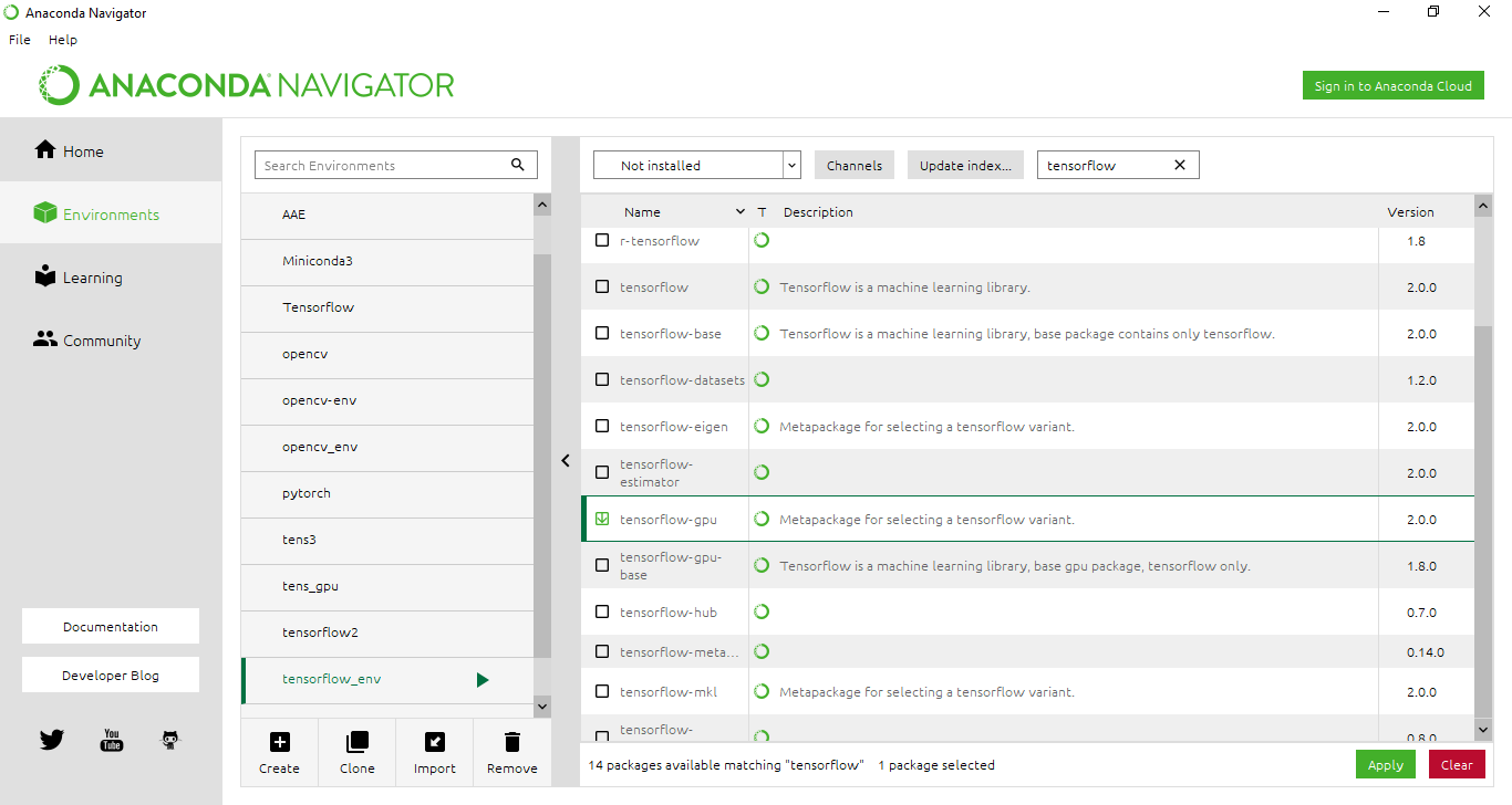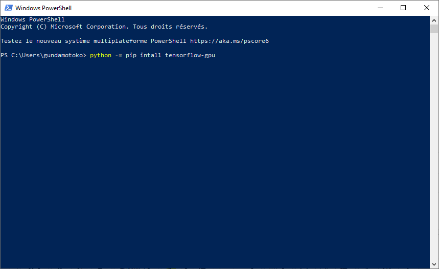 Une fois ces modules installé, la ligne de commande suivante, vous permettra d'installer la version gpu de tensorflow.