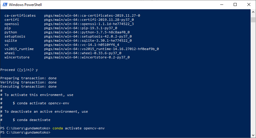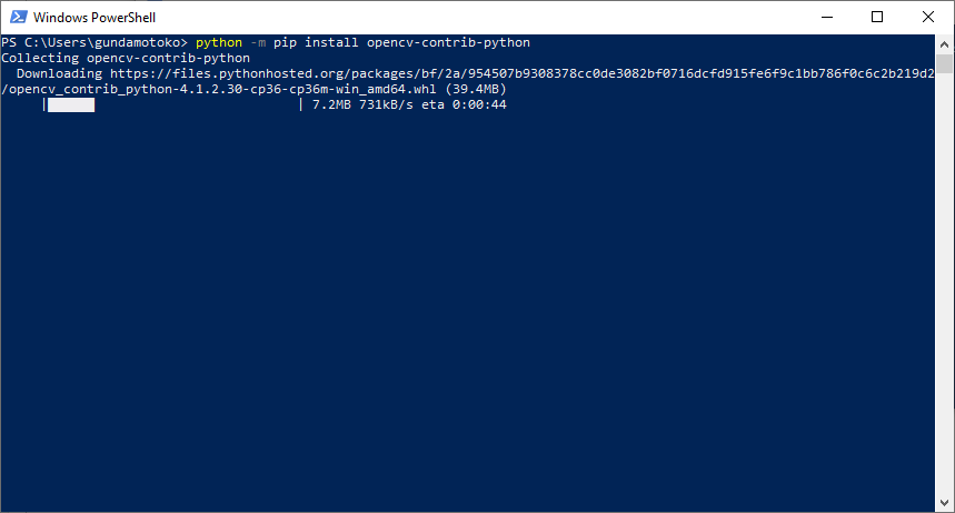 Pour installer OpenCV en utilisant le gestionnaire de paquets par défaut de python, il vous suffit de taper dans votre windows powershell :