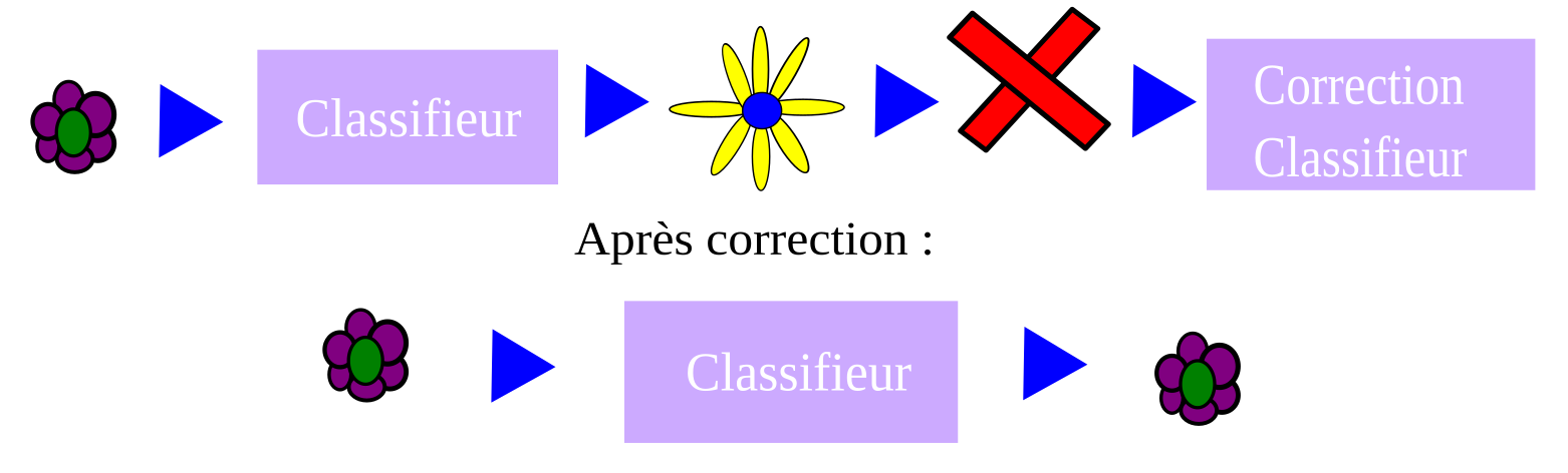 Dans ce dernier cas, il est automatiquement modifié par son algorithme d'entraînement, de tels sorte qu'après correction il puisse donner la bonne réponse.